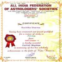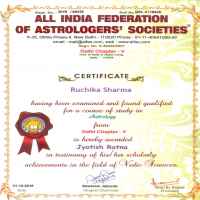 Rachika R Sharma is an Astrologer, Numerologist, Palm reader, lal kitab, Vastu shastra expert. She has successfully completed courses like Jyotish Praveen, Jyotish Ratan, Jyotish Bhushan, Jyotish Visharad, Lal Kitab, Numerology, Vastu, Palm reading from ICAS (Indian Council of Astrological Sciences) and AIFAS (All India Federation of Astrologers Socities) and doing research in Astrology. Also Topped in astrology all over Delhi. Recognized for a strong and excellent academic background with MBA, MCA and M. Com with excellent interpersonal and communication skills with demonstrated abilities in customer relationship management. Prepare horoscope by computing position of planets, their relationship to each other and to zodiac signs, based on factors, like time place person was born. And detailed analysis of horoscope to advise clients regarding future trends events. Ability to listen to and understand information and ideas presented through spoken words and sentences. Identify complex problems and review related information to develop and evaluate options and implement solutions. Consider the relative costs and benefits of potential actions to choose the most appropriate one.